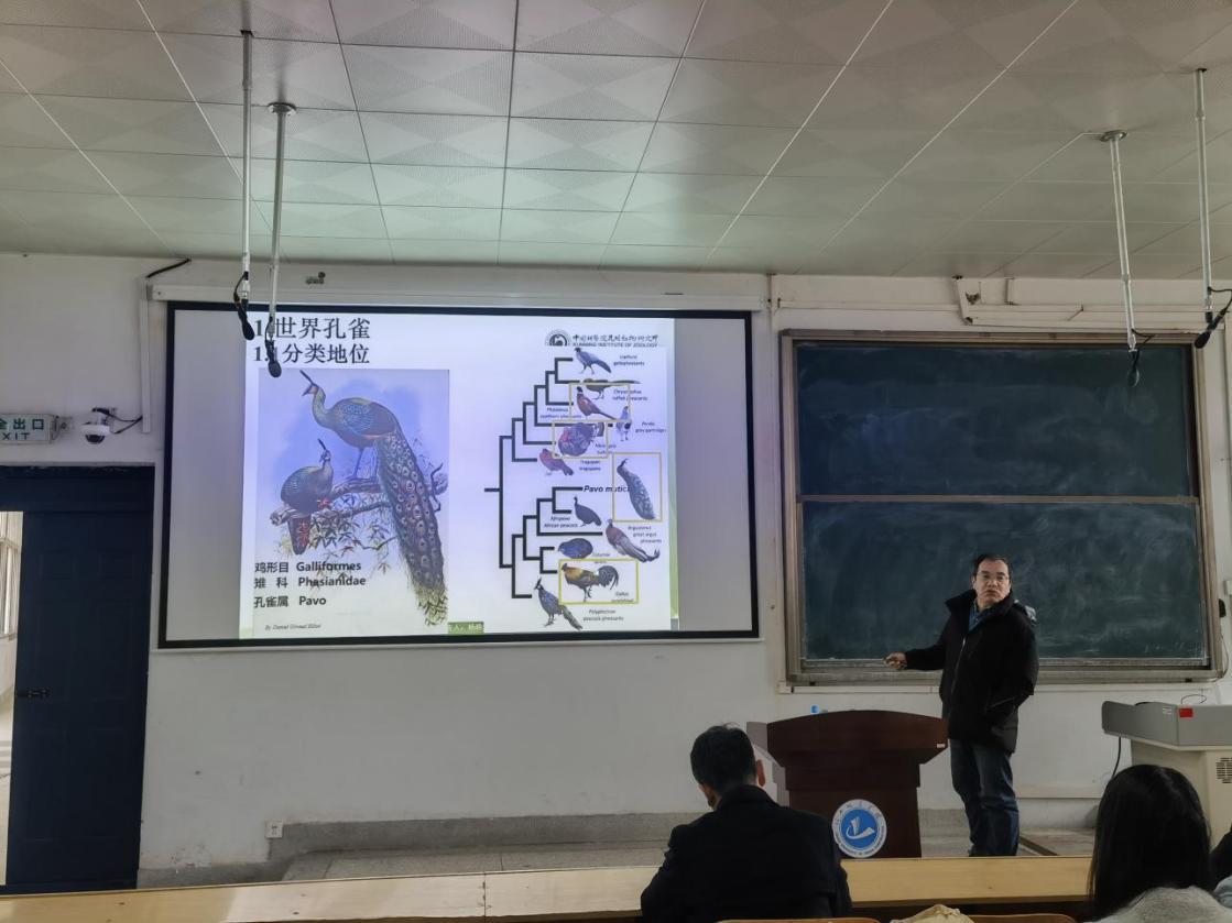 杨晓君研究员做了“中国绿孔雀及其保护”的学术报告,伍和启博士做“中科院鸟类生物多样性监测与研究网络”的学术报告,与会员工和教师就绿孔雀研究及保护和鸟类卫星跟踪问题进行了深度的交流。