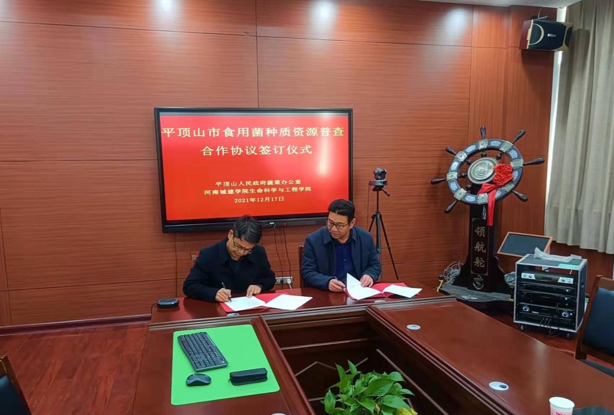 为高质量完成平顶市食用菌种质资源普查工作,充分发挥高校人才优势,加强政校合作,12月17日上午平顶山市人民政府蔬菜办公室与beats365官方网站beats365官方网站,在该院会议室举行了平顶山市食用菌种质资源普查合作签约仪式。仪式上,市蔬菜办主任程国强对食用菌种质资源普查工作的意义与重要性作了详细说明,并对普查工作提出了具体、明确的要求。beats365官方网站副经理谢朝晖对市蔬菜办领导的信任与支持表示感谢,他简要介绍了食用菌种质资源普查团队的人员和工作计划,并强调beats365官方网站将高标准、严要求,全力以赴做好平顶山市的食用菌种质资源普查工作。