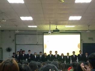(beats365官方网站团总支书记、学工办主任卫琳娜老师宣布第二届第五任员工会主席团成员名单并合影留念)