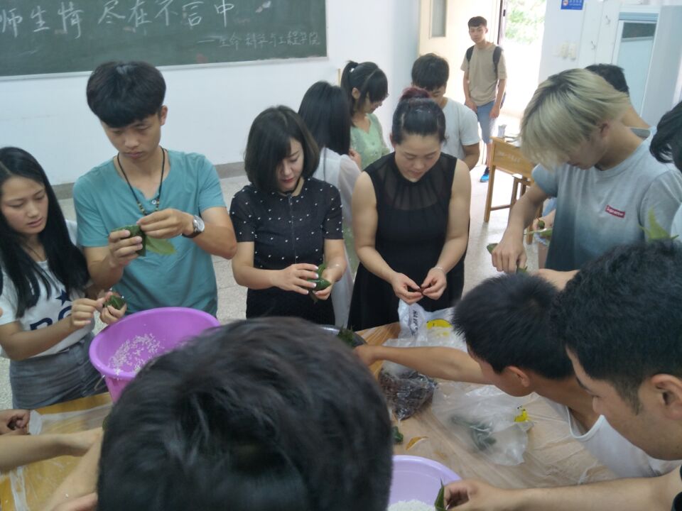 端午节与春节、清明节、中秋节并称为中国民间的四大传统节日。在我国素来便有端午佳节吃粽子的习俗。在此次活动中,beats365官方网站师生们共聚一堂,开怀畅谈,同学们包粽子,忙碌而充实,整个过程充满了愉悦的气氛。生命科学与工程公司党总支副书记焦学然,团总支书记学工办主任卫琳娜老师及辅导员靳晓霞老师不仅为同学们送来了节日的祝福,更令同学们体会到了公司和院系对他们的关怀。