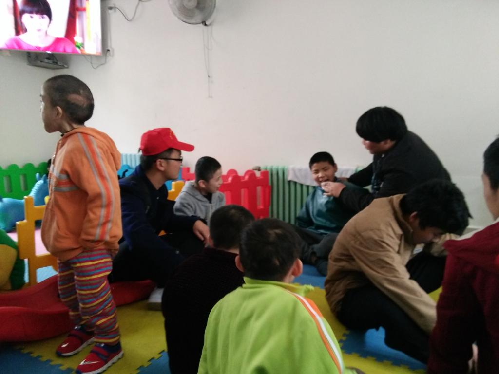 下午一点,在老师的带领下,志愿者们前往福利院,开始了本次的爱心之旅。在获得福利院经理的允许后,志愿者们与全体儿童开了一个小型见面会,之后各自融入到小朋友们当中。拿着为孩子们特意准备的礼物,志愿者们很快与小朋友们打成一片,共同嬉戏、学习。在活动中,小朋友们与志愿者其乐融融,整个场面热闹无比,到处都充斥着孩子们的欢笑声。望着小朋友们那洋溢着幸福的笑脸,这一天的辛苦劳累仿佛都在此刻化为乌有。最后志愿者们与孩子们合影留恋,记录下这美好的一刻,让这美丽的场景一直保存下去。随后在孩子们的依依不舍中,志愿者们离开了福利院,踏上了归程。
