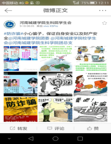 还通过微博、板报、海报的形式,多元化的对防骗知识进行了宣传。