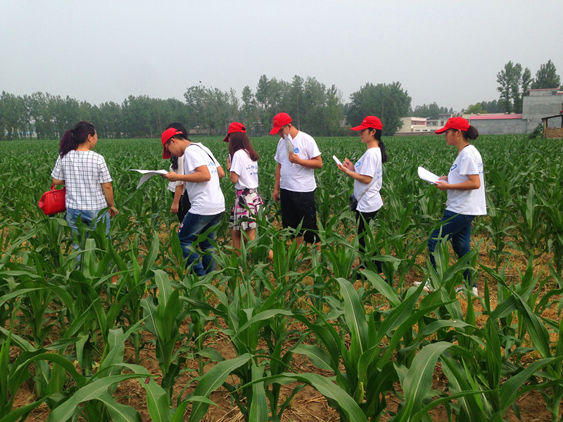 上午,实践团在刘营村村委书记李红艳的带领下,进入该村较大种植规模的玉米地进行实地考察。实践团成员发现,当地玉米存在有种植不规范情况,便利用所学专业知识向村民普及“玉米一穴双株高密度高产高效栽培技术”, 该技术针对当前玉米生产种植要求,同时结合农民生产实际,改常规一穴单株种植为一穴双株种植,能够充分发挥耐密型玉米品种特性,有效增加亩株数和亩收获穗数,同时也可以提高肥料利用率,达到提高产量和收益的效果。