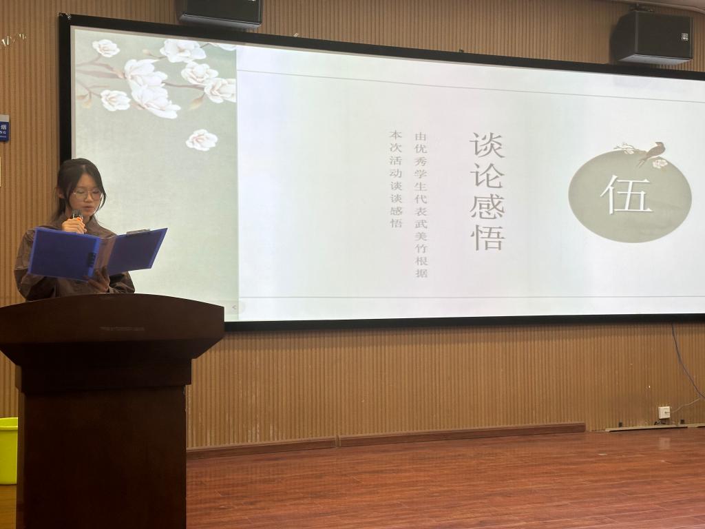 活动伊始,由主持人带领师生一起了解河南丰富绚丽的文化风貌。通过观看短片,让员工欣赏河南的自然风光和历史遗迹,感受河南人民对传统文化的传承和发扬,对河南丰富绚丽的文化风貌有更加深入的了解。“学模范”环节中,马怀智的先进个人事迹,让同学们深刻认识到何为奉献精神,并教会大家如何真正实现个人的价值和人生的意义。“学经典”环节中,冯兴华带领大家共同学习习近平总书记关于弘扬中华优秀传统文化的重要论述。“诵经典”环节中,张苏娅同学诵读《践行奉献精神,争做时代楷模》,鼓励师生忠于祖国,不怕吃苦,勇于实践,为实现中华民族伟大复兴中国梦而努力奋斗。“谈感悟”环节中,员工代表武美竹同学分享了自己对中华优秀传统文化的理解和体会。“送祝福”环节中,全体辅导员向同学们送上书签和祝福,此次文化讲堂活动圆满结束。