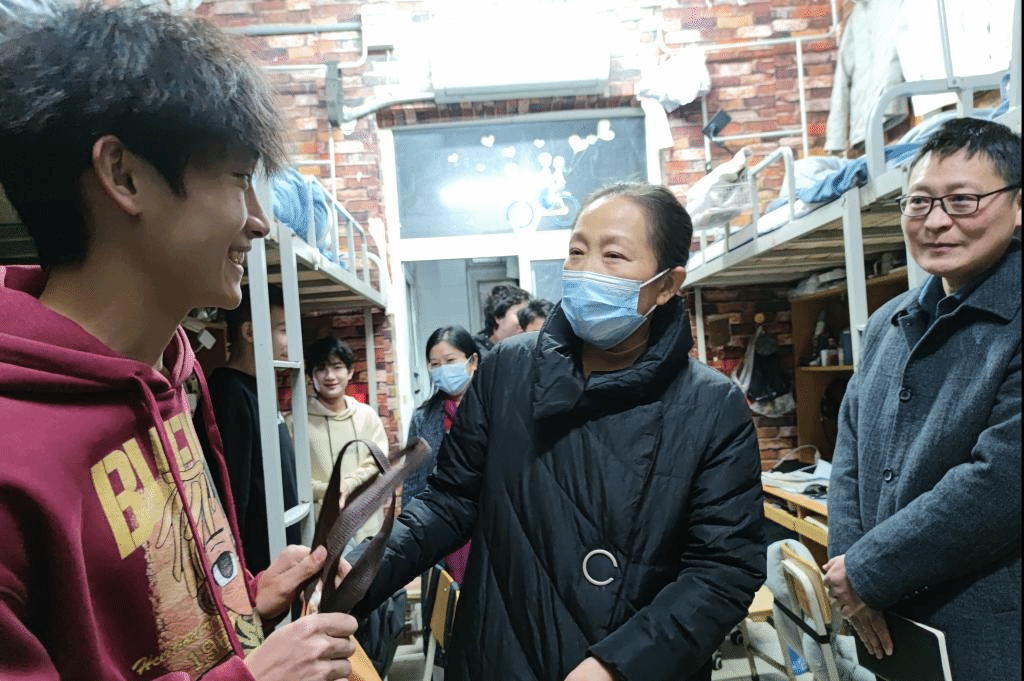 走访中,吴晓红认真查看宿舍环境,关注宿舍安全、设施设备等情况,要求工作人员及时消除安全隐患。吴晓红向海南省等南方省份同学了解棉服、被褥是否充足,提醒同学们注意近期气温变化,做好自身健康防护,叮嘱大家注意宿舍用水用电以及外出安全,代表公司送上了爱心羽绒服、棉被等御寒物资。吴晓红还亲切询问同学们的日常学习情况,了解大家思想动态,提醒同学们做好复习计划,珍惜时间,努力学习,保持乐观向上的心态。一句句贴心的叮嘱,切实把关心送到同学们的心坎上,让同学们倍感温暖。