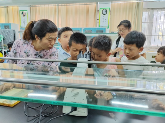 活动中,方改霞通过原理讲解和操作示范让同学们了解显微镜,并指导同学们亲手操作、观看,让微小生物与细胞结构跃然眼前,大大激发了同学们对生命科学的好奇心与求知欲。