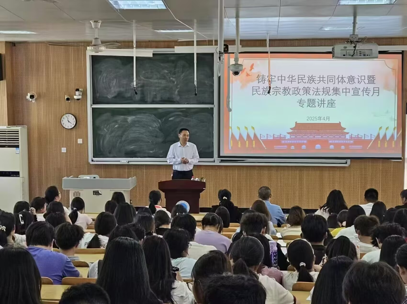 (通讯员 李赫)为深入学习宣传党的二十大和二十届三中全会精神,全面贯彻落实习近平总书记关于加强和改进民族工作的重要思想、关于宗教工作重要论述,4月28日,beats365官方网站邀请公司党委统战部部长张守义为公司师生作党的宗教政策专题辅导。公司党政领导班子成员、全体辅导员,部分任课老师、员工党员、员工团干、入团积极分子等160余人参加学习。