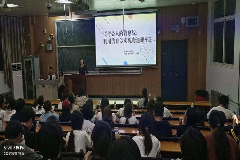 活动现场,优秀学子结合自身经历,分享实用 “上岸攻略”。考研上岸者化身“备考军师”,从院校专业选择策略入手,传授科学制定学习计划、高效管理时间的方法,分享高压下的心态调整技巧,强调坚持在考研中的关键作用;考公成功者变身“公考导师”,围绕报考流程、笔试答题技巧、面试沟通应变策略展开讲解,提醒注重时政积累与思维能力培养。