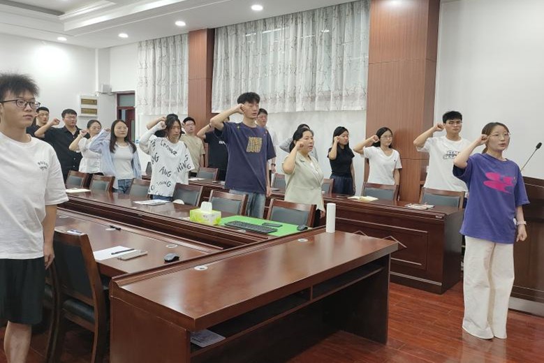 课前,全体党员重温了入党誓词。