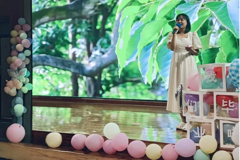 晚会以歌曲《当你》开场,随后,《爱你没差》《至少还有你》《去年夏天》《岁月神偷》《我们的明天》等歌曲接连唱响,演唱者们深情的嗓音,唤起了毕业生们对校园时光的珍贵回忆,深情诉说着对师生、校园的不舍。舞蹈《Whiplash》、舞蹈串烧活力满满,点燃现场气氛。活动中特别设置了抽奖送祝福环节,现场陈兰英教授通过抽取幸运号码,为毕业生们送上礼物与美好祝福。最后,毕业班辅导员与毕业生共同演唱《世界那么大还是遇见你》,歌声中满是不舍与期许。