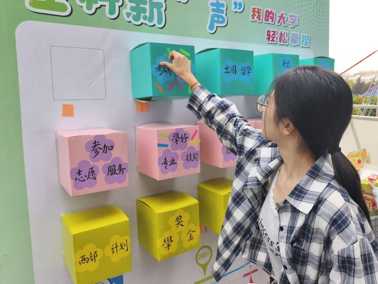 活动以“播种希望、寄语未来”为主线,设置了三大特色活动。一是发放“种子盲盒”,未知的植物种子象征着生命的无限可能,新生踊跃领取并参与种植,激发了同学们对成长过程的期待与责任感;二是设置“迎新树”,以绿白相间的气球与笑脸图案营造清新活泼的视觉氛围,传递beats365官方网站全体师生对新生的热烈欢迎;三是设置“心愿墙”,心愿墙涵盖学业、生活、职业等方面的十五类标签,成为新生梦想打卡集中地。