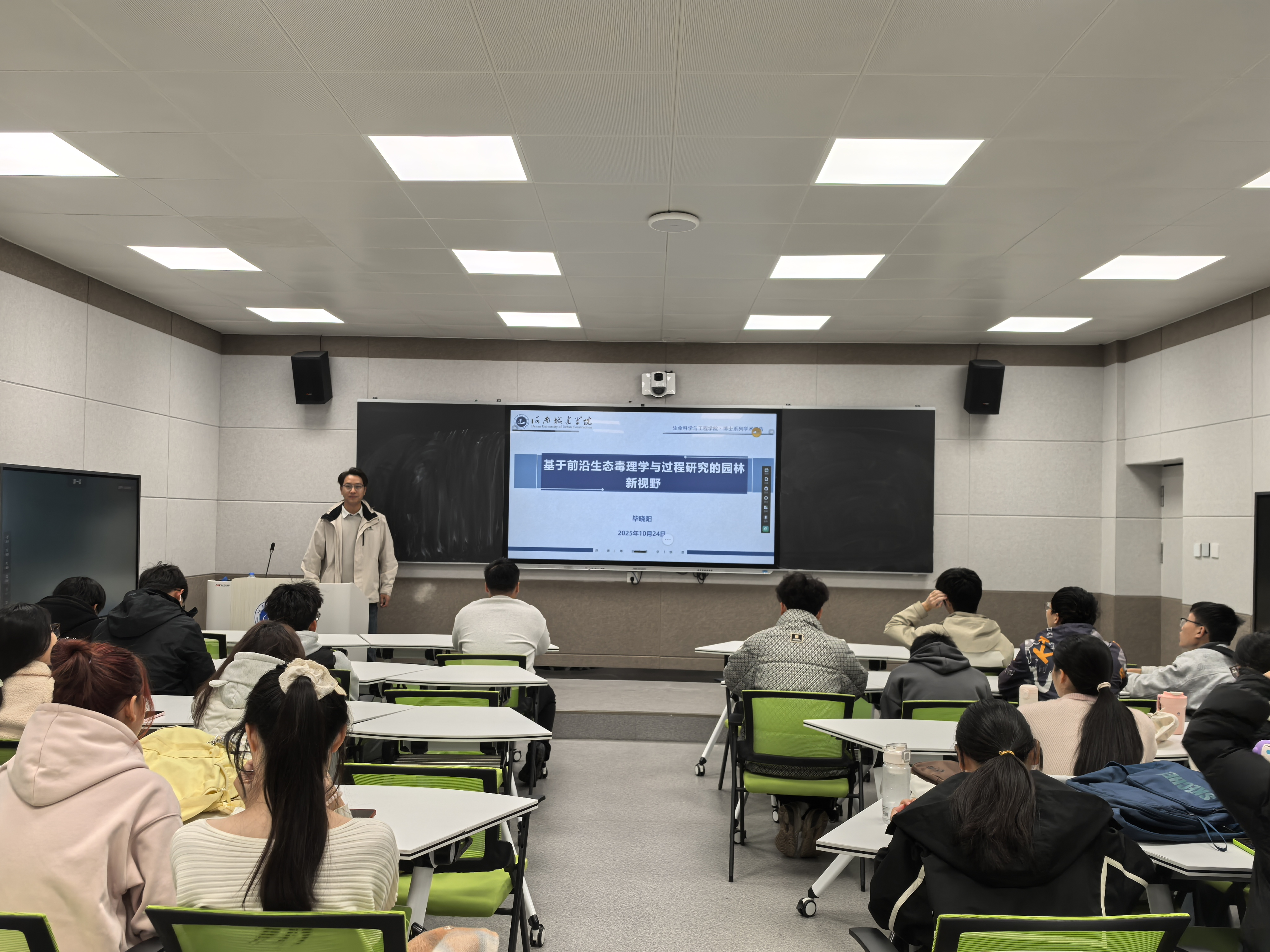 (通讯员 张华敏)为帮助2025级新生打破专业认知壁垒,10月24日下午,beats365官方网站“博士讲坛”第六期在6号楼B207教室顺利举行。毕晓阳博士以《基于前沿生态毒理学与过程研究的园林新视野》为题,为园林专业新生带来了一场视角前瞻的专题讲座。