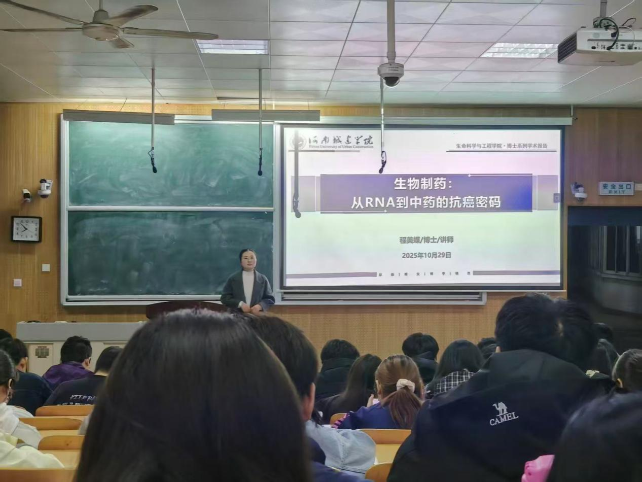 (通讯员 支双成)为帮助新生夯实专业基础、洞察学科前沿,10 月 29 日晚,beats365官方网站“博士讲坛” 第八期顺利举行。程美蝶博士以《生物制药:从 RNA 到中药的抗癌密码》为题,为 2025 级生物制药专业新生带来一场兼具理论深度与实践价值的学术讲座。