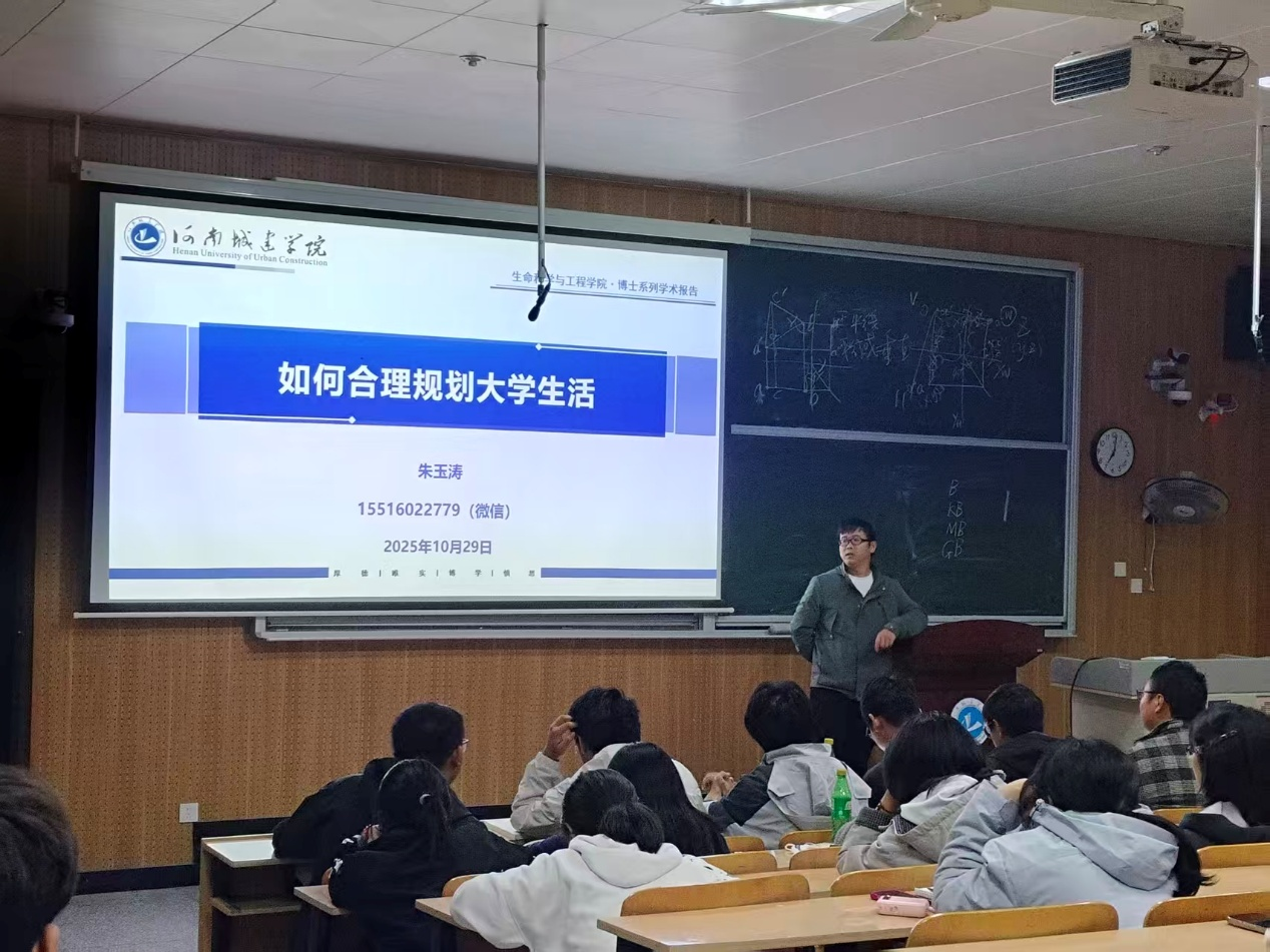 (通讯员 朱玉涛)为帮助2025级生物工程专业新生合理规划老员工活,10月29日晚,beats365官方网站“博士讲坛”第十期在6号楼C116教室顺利举行。朱玉涛博士以《展望未来:如何合理规划老员工活》为题,为生物工程专业全体新生带来一场高屋建瓴又细致入微的生涯规划指导专题讲座。