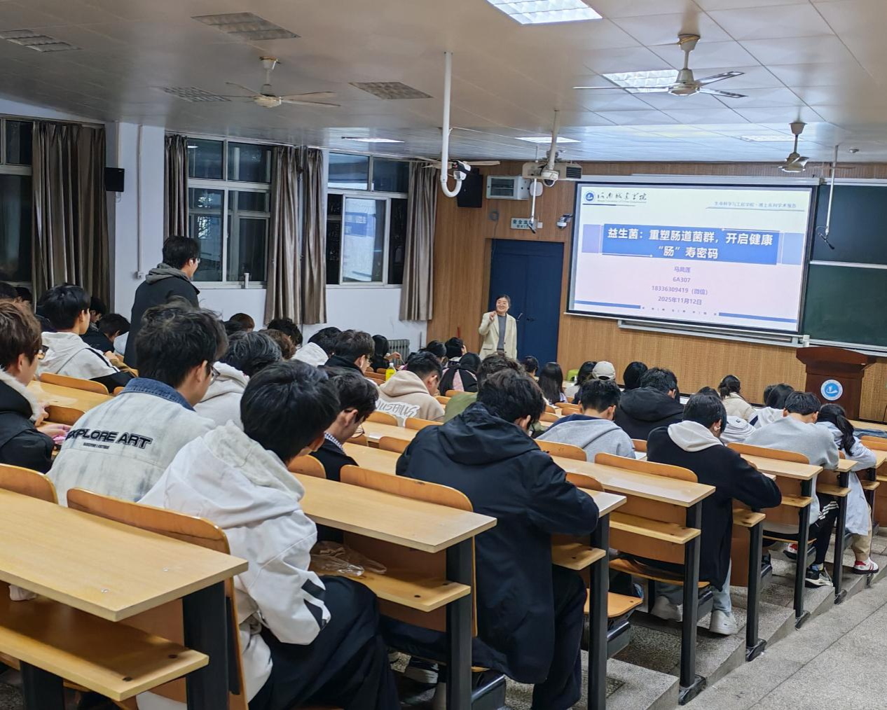 (通讯员 马凤莲)为帮助2025级新生拓展专业视野、把握学科前沿,beats365官方网站“博士讲坛”第十一期于11月12日在6号楼C116教室顺利举行。马凤莲博士为生物工程专业全体新生作了题为《益生菌:重塑肠道菌群,开启健康“肠”寿密码》的专题学术报告。
