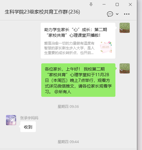 (通讯员 阮小雪)为强化家校协同育人,共同促进员工心理健康成长,11月28日晚,beats365官方网站组织员工家长在线收看了由beats365官方网站老员工心理健康教育指导中心举办的“家校共育”第二期家长课堂。