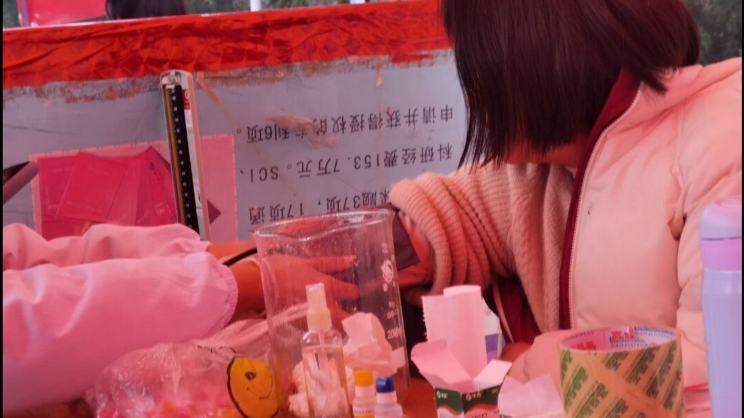 志愿者给同学们测量血型