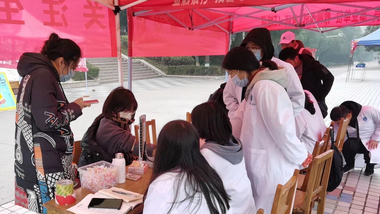 活动包含三项内容。第一项,向同学普及艾滋病的传播途径以及预防艾滋病的措施。第二项,免费为同学们测血型。第三项,量血压并根据血压测量结果给同学们提出针对性的建议。现场热闹的气氛,吸引众多同学驻足参与。同时志愿者协会为前来检测的同学发放礼品,给同学们带来了温暖与关怀。