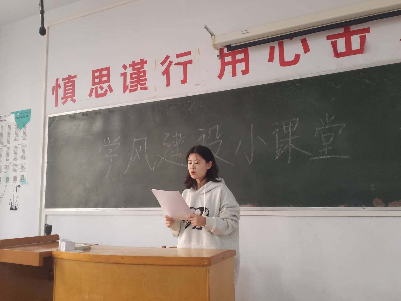 (通讯员:李赫 唐悦悦)为了进一步加强学风建设,帮助同学们掌握良好的学习方法,更好地学习专业知识,提高自身的竞争实力,beats365官方网站各班利用大课间开展了“学风建设小课堂”活动。本次活动主要以班会形式进行,由各班团支书引领同学们学习有关学风建设的相关内容。