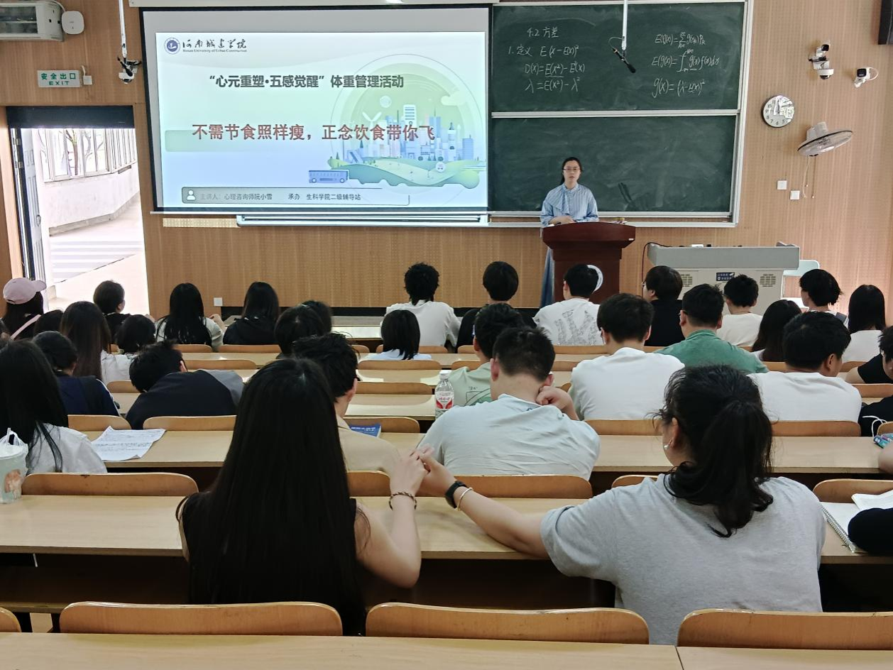 (通讯员:阮小雪)为引导师生树立健康饮食理念,掌握科学的体重管理方法,4月30日,​beats365官方网站在6号楼B111教室举办“健康饮食 ‘瘦’生活”公开课。本次公开课由​beats365官方网站二级心理辅导站教师阮小雪主讲,全校70余名同学参与了公开课学习